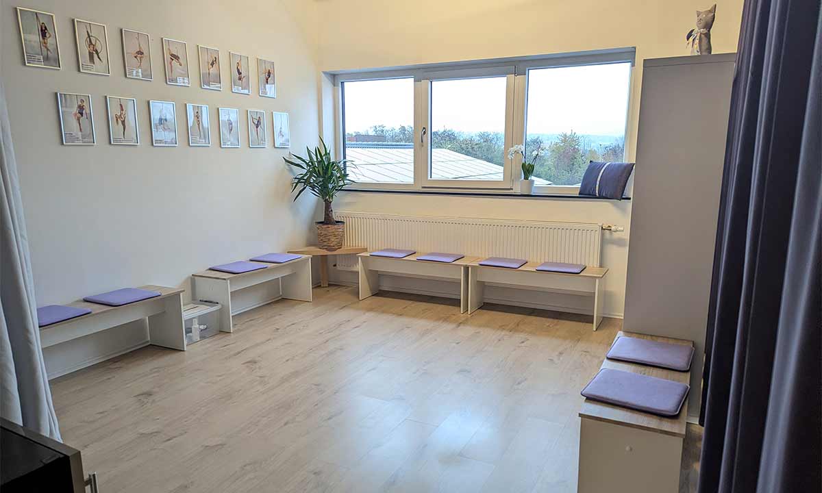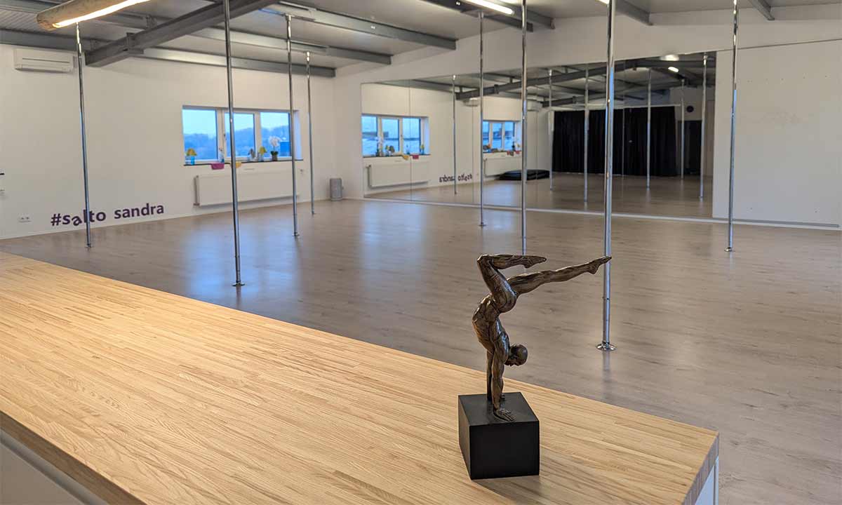 Die großzügigen, hellen Räume mit hohen Decken sind im Sommer wie im Winter angenehm temperiert. In 10Meter breiten Sicherheitsspiegeln kannst Du Deine Technik und Ausführung kontrollieren. Dicke Polesportmatten, hochwertige Airex Matten und natürlich unsere zertifizierten, erfahrenen Trainerinnen sorgen für Deine Sicherheit fernab vom Boden! Im Wartebereich kannst Du Dich Dich diskret umziehen, Deine Sachen unterbringen, das kostenlose WLAN nutzen und Dich auf Deinen Kurs freuen 🙂