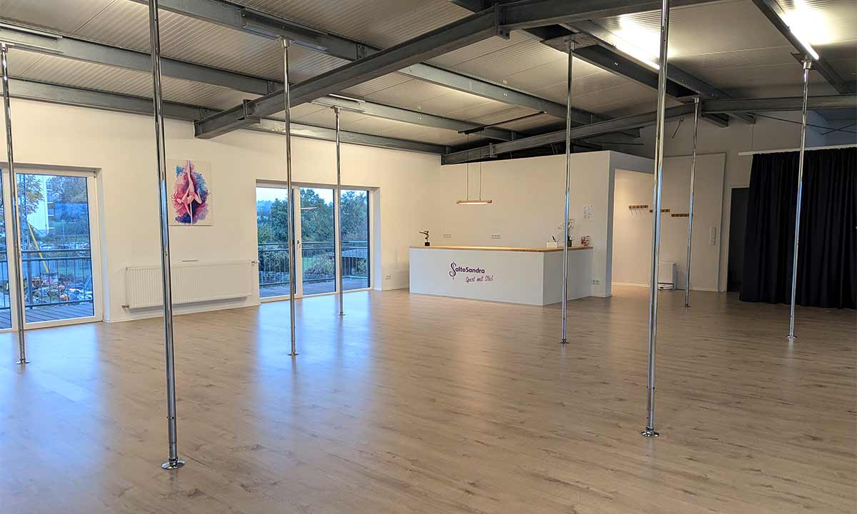 In unserem kleineren Studio im Industriegebiet von Mainz-Mombach finden viele Poledance-Kurse aus dem Anfängerbereich ihren Platz. Vor allem aber ist es der Ort für das offene Training, für Dein ausgiebiges Training an Pole oder Hoop, Zeit mit Deinen liebsten Pole Buddies!